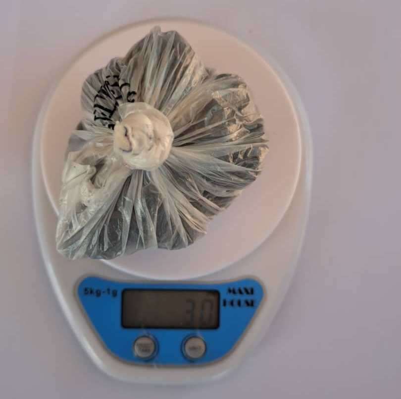 A otro ciudadano identificado como Eduardo Enrique Fernández Padilla de 20 años de edad, se le incautó del bolsillo delantero derecho del shorts, un envoltorio de material sintético que contenía una sustancia de color blanco, presuntamente cocaína, con un peso de 10 gramos, un peso digital tipo gramera y un teléfono celular.
