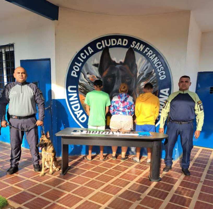 Oficiales de la Policía del Municipio San Francisco detuvieron este viernes dos hombres y una mujer en el barrio Santa Fe II, parroquia Los Cortijos, Cuadrante de Paz número16, por microtráfico de droga.