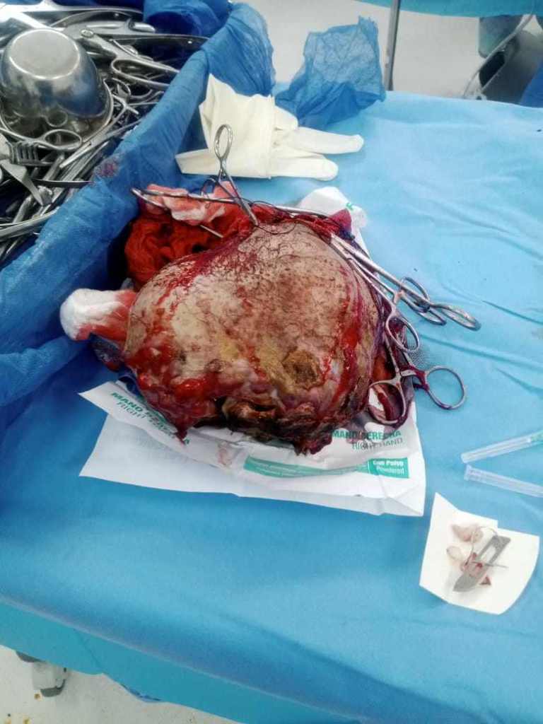 Este día, ingresó al Servicio de Pabellón la señora, Yolenis Montiel, de 37 años de edad, con un diagnóstico de lesión tumoral gigante en el cráneo, producto de un golpe en su cabeza, con data de más de 2 años.