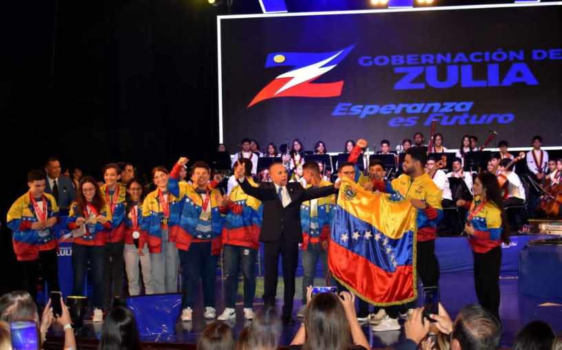 En un Teatro Baralt desbordado de alegría, música y color, el Gobernador del estado Zulia, Manuel Rosales, junto con el pueblo, recibió a los miembros de la Selección Nacional Team Venezuela, Campeones del Mundial de Robótica FIRST Global Challenge Singapur 2023, luego de arribar este miércoles a tierras zulianas.