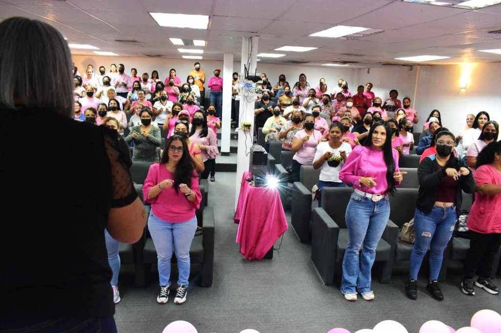 Con el auditorio Humberto Fernández Morán, lleno de mujeres guerreras, el departamento de Desarrollo Socia en conjunto con la Fundación Damasur, brindaron una charla de motivación a quienes de una u otra manera han padecido de este mal, con la finalidad de brindarles herramientas que las hagan sentir de la mejor manera para enfrentar la realidad.