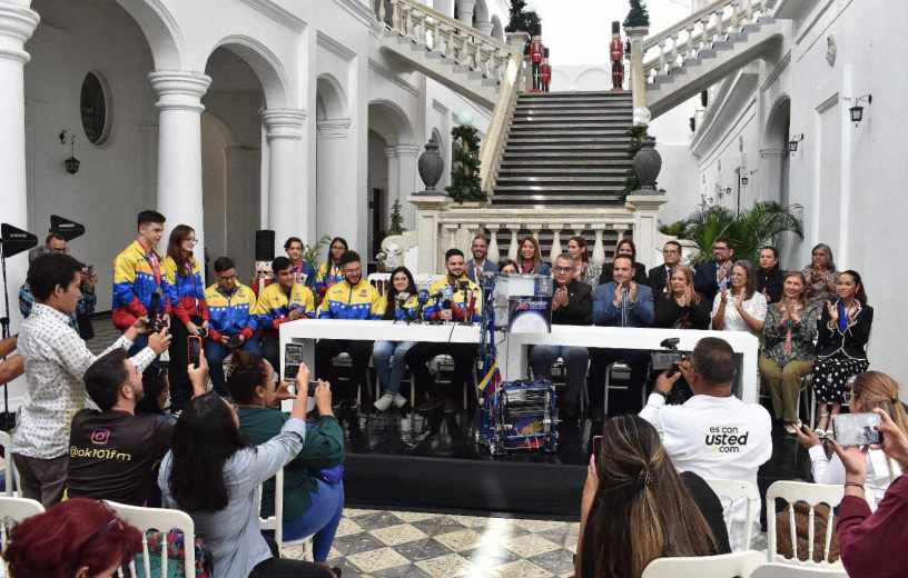 Los integrantes del Team Venezuela, Campeones Mundiales de Robótica e Inteligencia Artificial del FIRST Global Challenge Singapur 2023, brindaron una rueda de prensa desde el Palacio de Gobierno del Zulia, para dar a conocer su experiencia durante el Campeonato Mundial, donde compitieron con representaciones de 191 países.