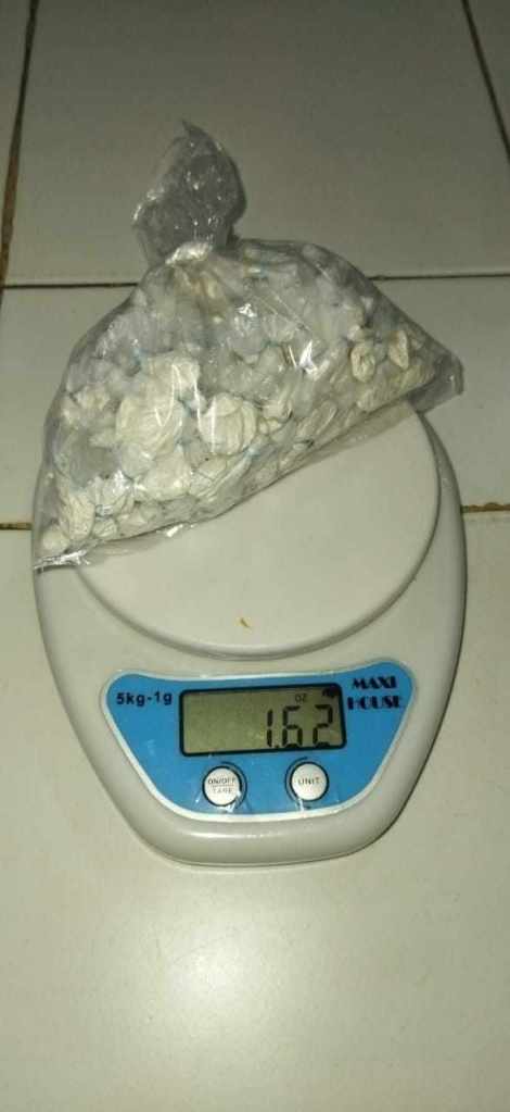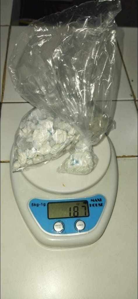 Los oficiales realizan la inspección de la vivienda, mientras la ciudadana arremete contra, por lo que proceden a restringirla; sin lograr ubicar al sujeto, pero descubren en la mesa de la sala comedor un envase sintético que contenía: un envoltorio mediano con una sustancia con olor fuerte penetrante, de presunta droga denominada cocaína, con un total de 0,25 gramos y 182 envoltorios de la misma sustancia con un peso de 1,62 gramos.