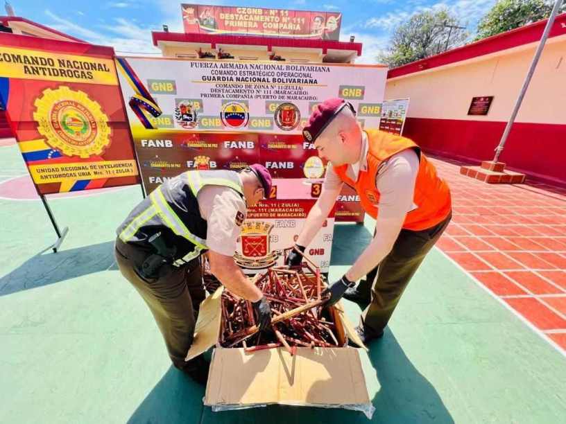Tras labores de inteligencia, guardias nacionales bolivarianos del Comando de Zona Nro. 11 Zulia, lograron hallar en el interior de 3 cortinas artesanales de bambú un cargamento de droga que tenía como destino la ciudad de Madrid en España.