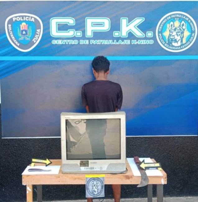 Un adulto y un adolescente fueron capturados en el sector Haticos por Abajo, parroquia Cristo de Aranza, municipio Maracaibo, por una comisión del Centro de Patrullaje K-nino (CPK) del Cuerpo de Policía Bolivariana del estado Zulia (Cpbez), señalados de ingresar a una vivienda, someter con armas blancas a un adulto mayor que se encontraba en el lugar y robar un televisor, así lo dio a conocer el CG Roberto Antonio Alfaro Molinarez director general del Cpbez.