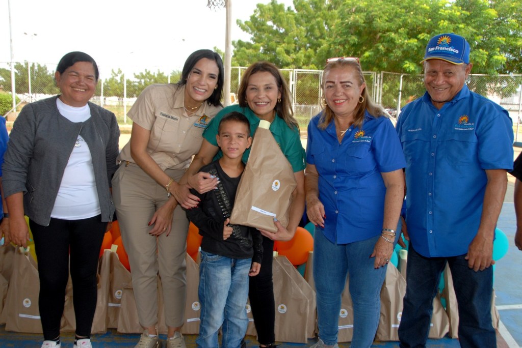 La primera dama de San Francisco, Franciela Núñez de Fernández, en representación de la primera autoridad municipal, junto a Fabiana Marín, gerente de Desarrollo Social y Participación Ciudadana y gran parte del tren gerencial, hizo entrega de los útiles escolares que constan de un variado material necesario para el desarrollo de las actividades educativas. “Es un placer ser parte de la formación de los niños del municipio”, expresó Núñez de Fernández, rodeada de los pequeños beneficiados.