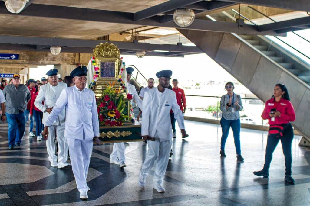 En la estación Libertador la réplica de la virgen que guarda la historia del Metro de Maracaibo, fue recibida por comerciantes, trabajadores quienes la acompañaron con cantos y aplausos, encaminada a lugar dispuesto con flores para tan importante presencia. Momento emotivo por ser la madre de Dios, fiel compañera dadora de esperanzas y fe.