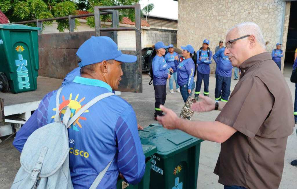 Desde el patio de camiones del Instituto Público Municipal de Ambiente y Aseo Urbano (Imasur), el alcalde del municipio San Francisco, Gustavo Fernández, acompañado de gran parte de su equipo de Gobierno, entre ellos Orlek Ferrer, director general del ayuntamiento, Villapol Morales, jefe de Despacho, Fabiana Marín, gerente de Desarrollo Social, Carlos Calles, presidente de Imasur y Romario Fuenmayor, gerente de Operaciones, anunció que de manera eficiente y ordenada se llegará a cada rincón del municipio a través de las rutas planificadas cumpliendo así la palabra empeñada de convertir al municipio en el más limpio del Zulia y Venezuela.