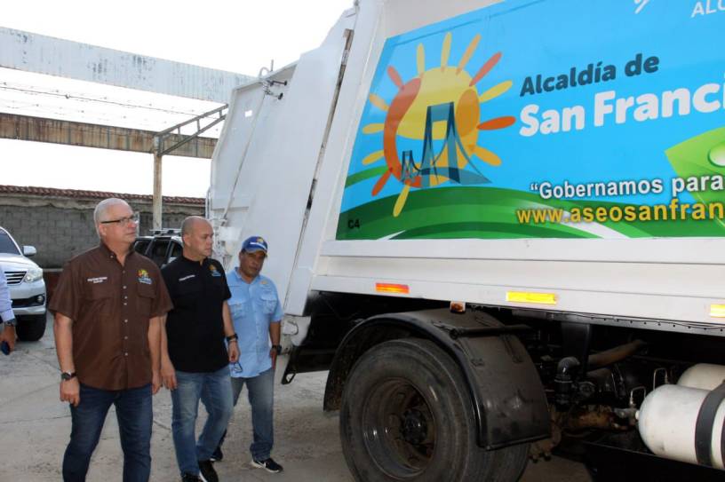 Desde el patio de camiones del Instituto Público Municipal de Ambiente y Aseo Urbano (Imasur), el alcalde del municipio San Francisco, Gustavo Fernández, acompañado de gran parte de su equipo de Gobierno, entre ellos Orlek Ferrer, director general del ayuntamiento, Villapol Morales, jefe de Despacho, Fabiana Marín, gerente de Desarrollo Social, Carlos Calles, presidente de Imasur y Romario Fuenmayor, gerente de Operaciones, anunció que de manera eficiente y ordenada se llegará a cada rincón del municipio a través de las rutas planificadas cumpliendo así la palabra empeñada de convertir al municipio en el más limpio del Zulia y Venezuela.