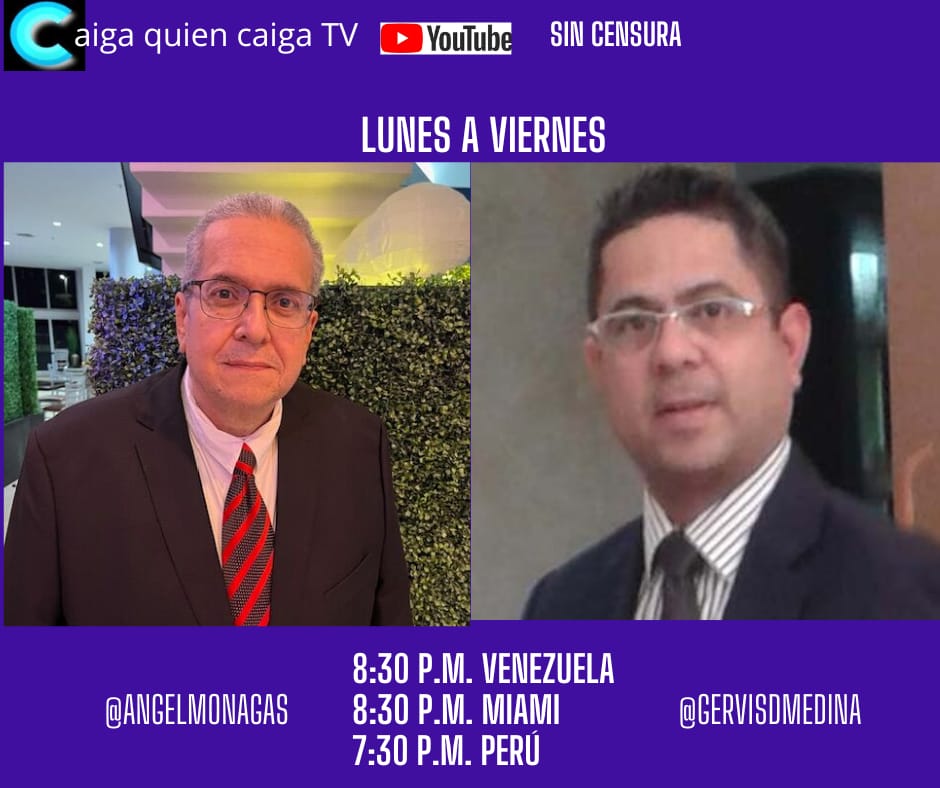 Estamos en vivo por el canal de youtube CaigaQuienCaigaTV, Instagram, Facebook y X de lunes a viernes a las 8:30 pm Hora Miami y también en diferido por el canal Factores de Poder.