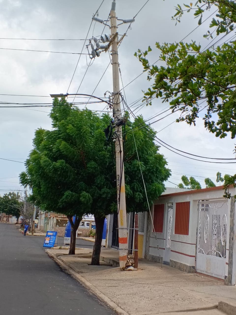 A la falta de energía eléctrica que agobia a la señora Berta Elena, se suma la preocupación de que el poste de donde viene el cable está partido en la base, sostenido por unas agarraderas que están que se rompen y que pueden causar un desastre similar al que ocurrió hace algunos años, cuando la misma pieza se cayó tumbando al mismo tiempo al menos 5 postes más, lo que dejó sin servicio eléctrico a toda la urbanización por varias horas.