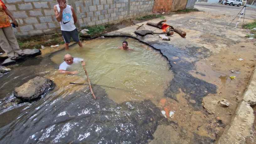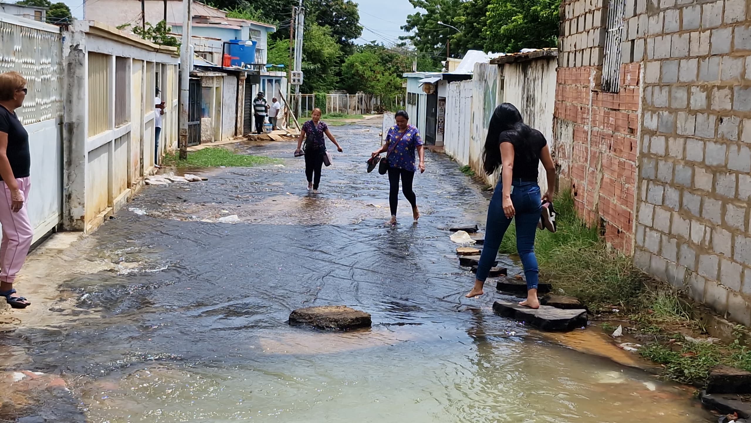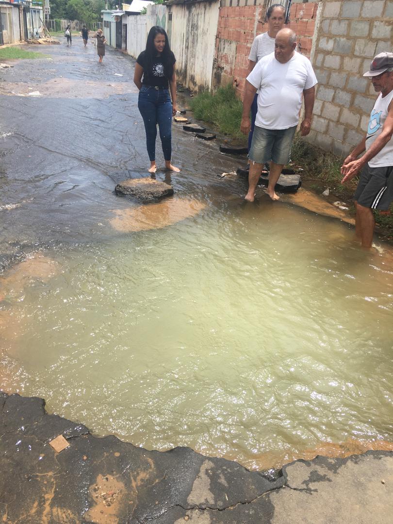 Hace casi un mes la circulación peatonal y vehicular es casi imposible en la calle 59 del sector Pueblo Nuevo del norte de Maracaibo, debido a que una tubería de aguas blancas se rompió ocasionando la pérdida de miles de litros del vital líquido, lo que a su vez está socavando la vía.
