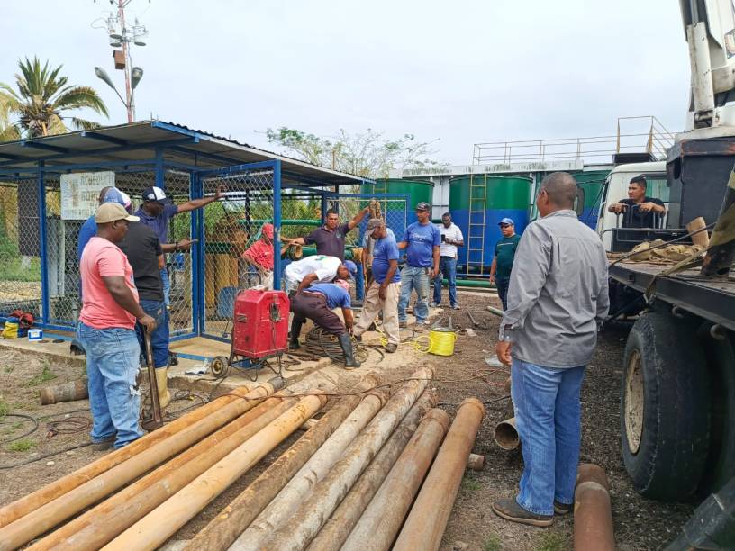 Los trabajos para reanudar el servicio de agua iniciaron la semana pasada cuando la cuadrilla de acueductos de la Alcaldía extrajo la bomba sumergible para su revisión, la cual resultó quemada, en tal sentido, el alcalde Yonys González y el ingeniero Carmelín Ballesteros, unieron voluntades para solucionar el inconveniente.