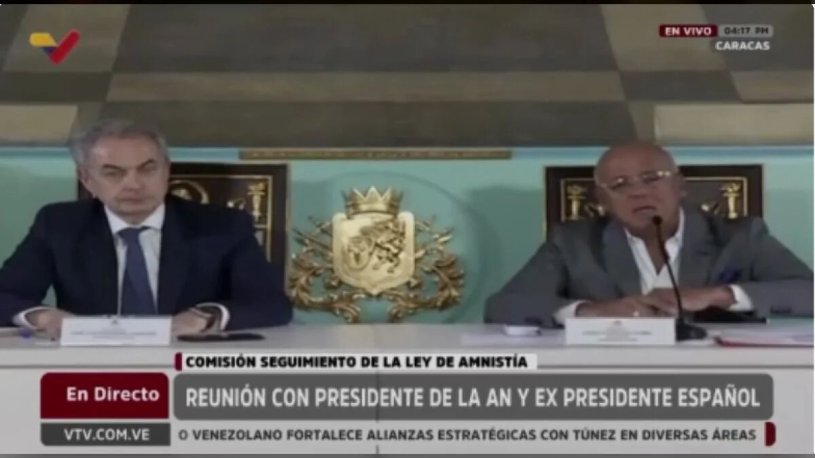 En el Salón de los Escudos del Palacio Federal Legislativo se desarrolla una reunión de la Comisión de Seguimiento de la Ley de Amnistía con el presidente de la Asamblea Nacional, Jorge Rodríguez, y el expresidente del Gobierno español, José Luis Rodríguez Zapatero.