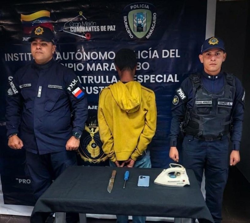 Tras recibir la denuncia, las comisiones policiales desplegaron labores de inteligencia en la zona, logrando avistar al sospechoso en la avenida 6G, donde se efectuó la detención para su control y posterior inspección corporal. En el sitio, se le incautó un arma blanca (cuchillo), un destornillador, un teléfono celular y una plancha de ropa.