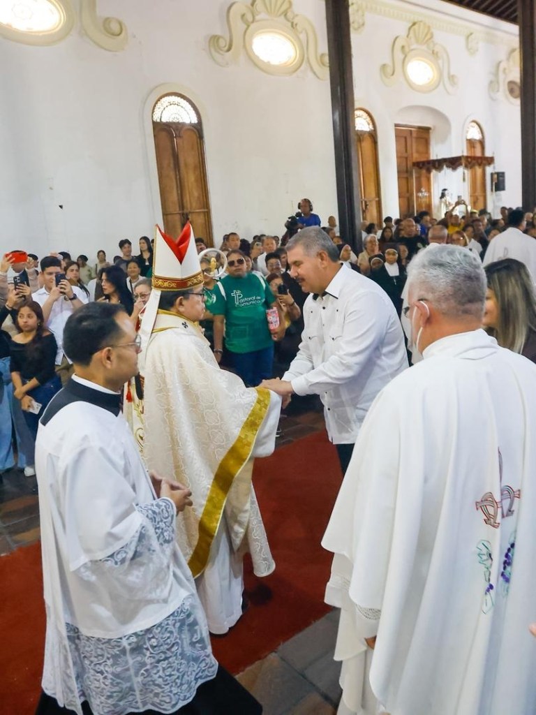 El mandatario regional, acompañado por la primera dama, Roselyn López de Caldera, participó en esta importante ceremonia presidida por el arzobispo de la Arquidiócesis de Maracaibo, monseñor José Luis Azuaje.