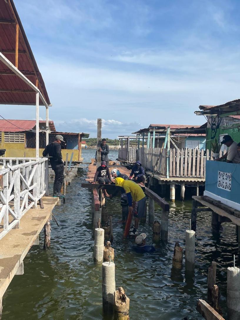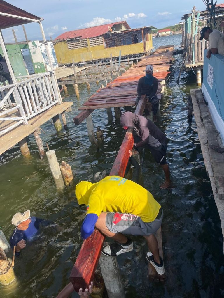 En un esfuerzo conjunto de distintos entes municipales, coordinado por el alcalde Giancarlo Di Martino, se avanza en la recuperación integral de las caminerías en el sector San Benito de esta comunidad palafítica.