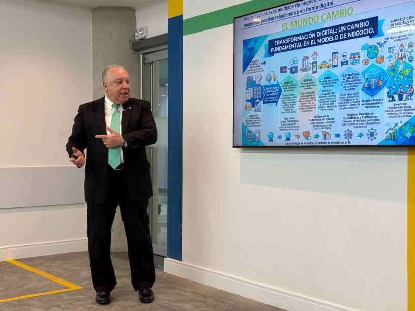 Expresó que la transformación digital es inevitable para ofrecer servicios ágiles, personalizados y competitivos que se estructuran de forma segura desde el diseño sobre cuatro pilares: la adopción de la nube, la IA, el Internet de las Cosas y la analítica del dato.
