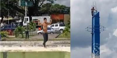 ¡SE VUELVEN LOCOS Y NO AVISAN! Se trepa semidesnudo a lo más alto de un obelisco y solo baja porque un pastor oró por él