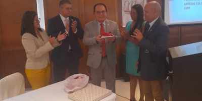 El Dr. Jesús Vergara Peña, recibe orgulloso la plata de reconocimiento a su dilatada trayectoria profesional.