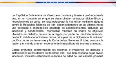 Destacado #Noticia, Internacionales, Política Venezuela condena ataques contra Irán mientras crece la presión por el retorno de Pahlavi Reza 28 febrero, 2026 — 0 Comentarios